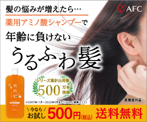 AFC 薬用アミノ酸シャンプー爽快感の お試しは、150mlと たっぷり使えて 500円(税別)、送料無料になります。